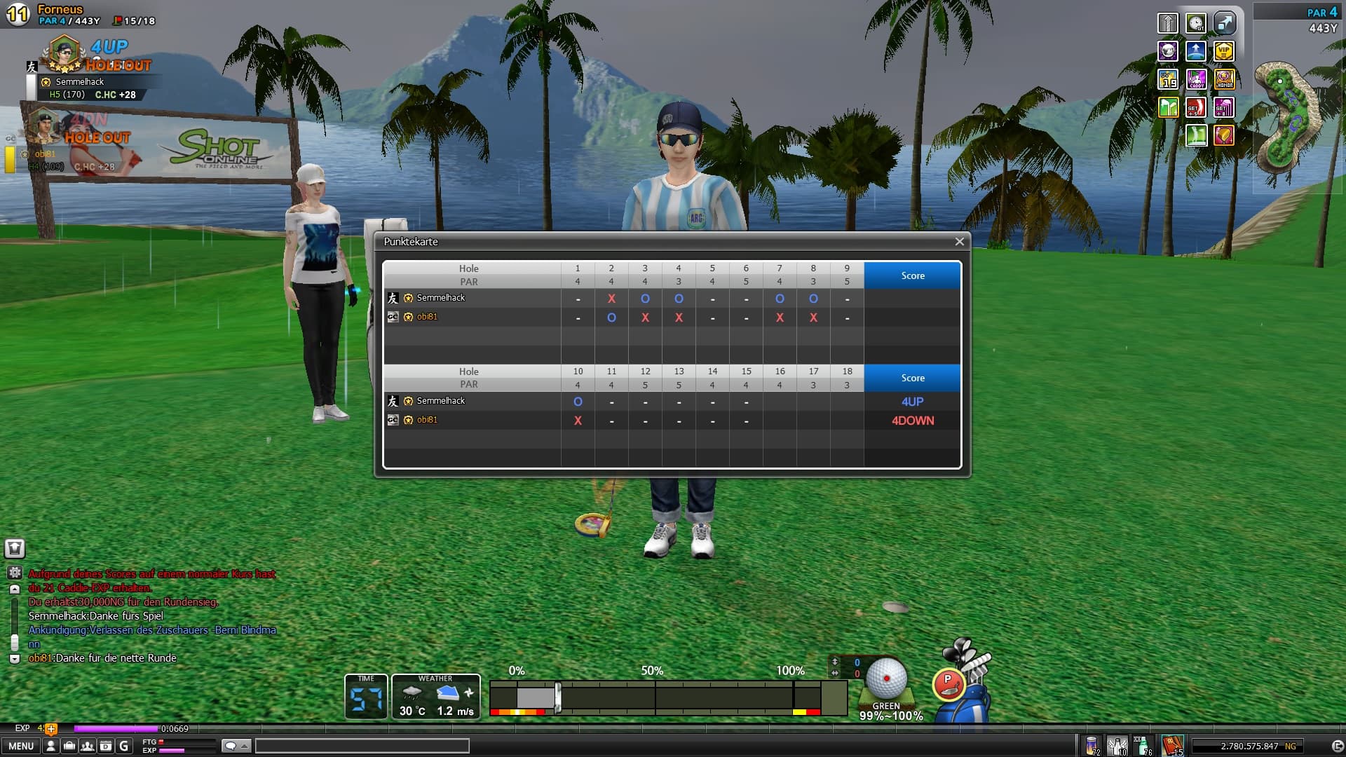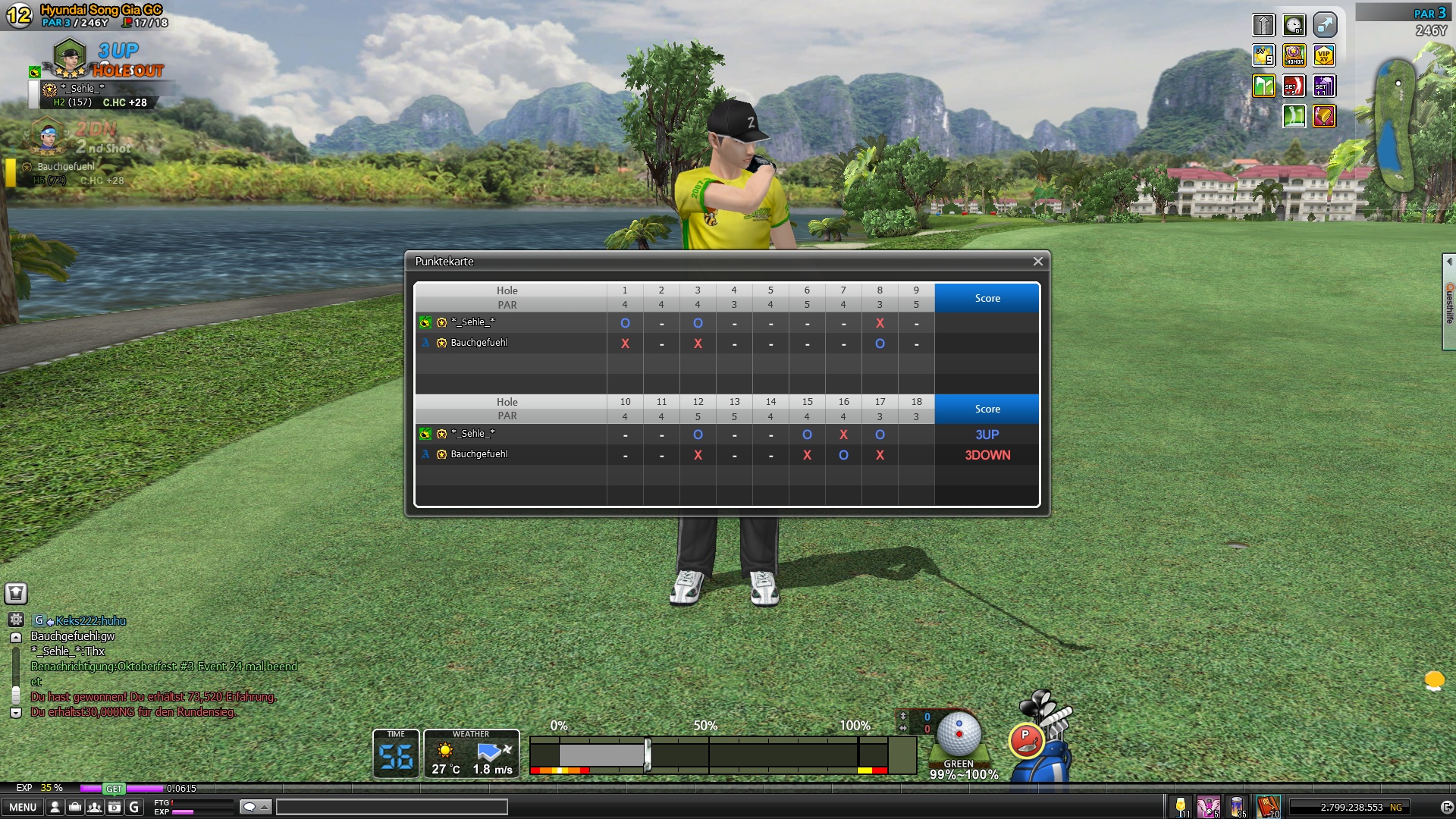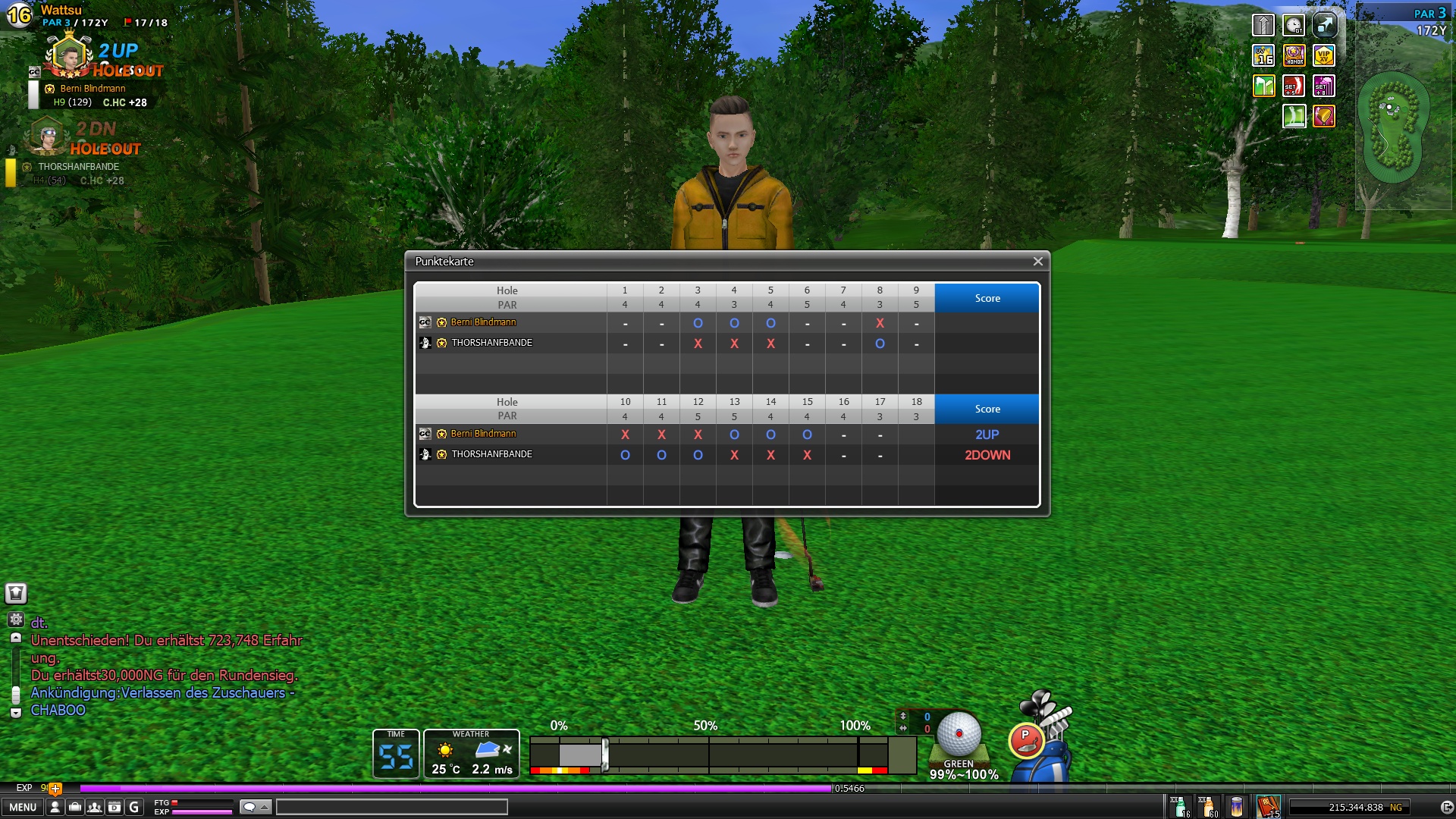 Berni gewinnt 2up. Danke Dir für die Runde, hast sehr stark gespielt.