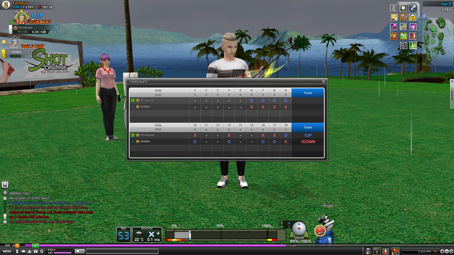 Dübel gewinnt nach einen doch noch spannenden match 1 Up danke nochmal für die runde